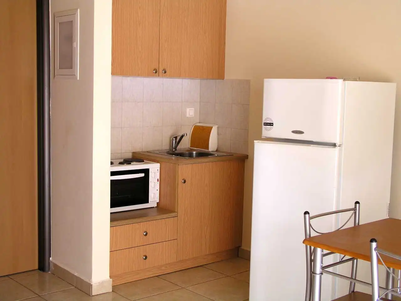 Κάθε διαμέρισμα είναι εξοπλισμένο με ψυγείο, κουζινάκι-φουρνάκι και σκεύη.